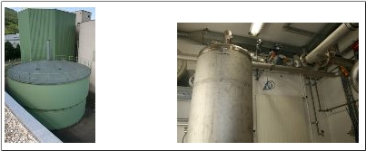 Der ausgefaulte Schlamm vom Faulraum wird unter Zugabe von Flockungsmittel statisch eingedickt, und gelangt in den Stapelbehälter wo er vor dem Abtransport zwischengelagert wird.