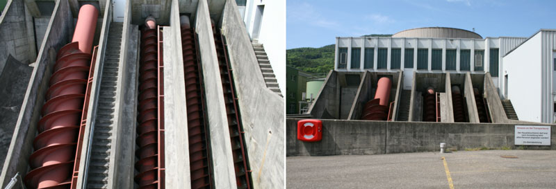 Das Hebewerk der ARA - Falkenstein besteht aus vier Schneckenpumpen. Drei Pumpen sind dazu da, um das Wasser vom Einlauf der Kläranlage auf ein höheres Niveau zu befördern. Die vierte Pumpe wird gebraucht um die Regenklärbecken zu füllen.