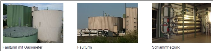 Der aufgeheizte Schlamm ( ca. 44 - 48 °C ) wird in den Faulturm gepumpt, wo er ca. 20 Tage umgewälzt und ausgefault wird. Dabei entsteht durch den Abbau organischen Substanzen das Klärgas, auch Methan oder Biogas genannt.